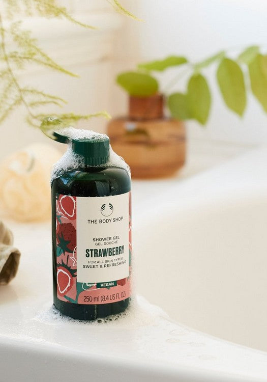Gi kroppen din en frisk, herlig og ren følelse med vår skummende Strawberry Shower Gel. Den er 100% vegansk og sertifisert av The Vegan Society. Hele 92% av ingrediensene er av naturlig opprinnelse, inkludert Community Fair Trade økologisk aloe vera og jordbærjuice fra Mexico. Dusjsåpen har duftnoter av jordbær, vanilje og ananas, og du vil raskt drømme deg bort en til solfylt sommerdag.