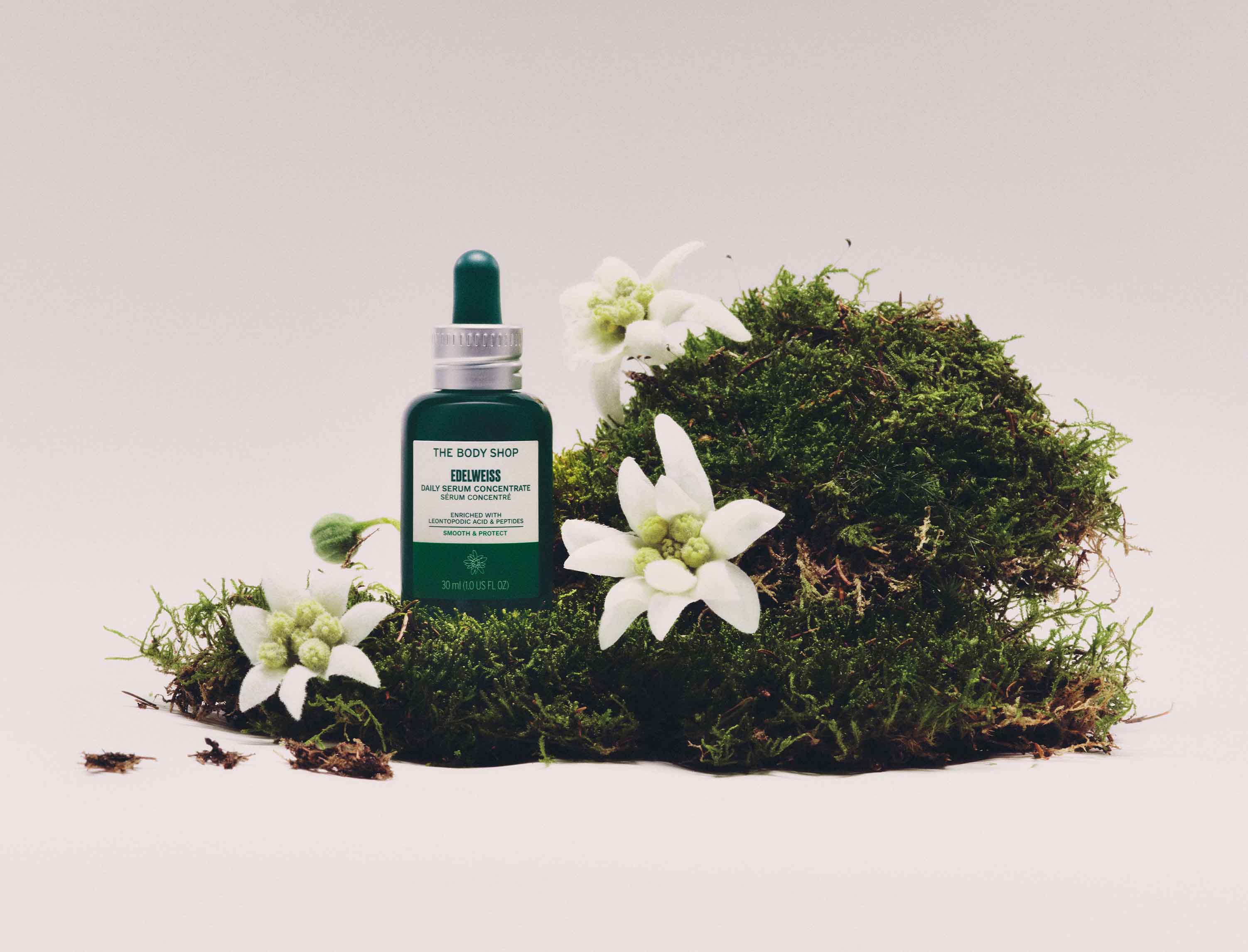 Vår nye Edelweiss Serum Concentrate er helt eksepsjonell. Vi har nemlig beriket hver flaske med dobbel konsentrasjon av edelweiss, som er naturlig (og unikt!) forsterket med leontopodsyre. Leontopodsyre er kjent for sine antioksidantegenskaper, og vil virkelig gi næring til huden. Faktisk er edelweiss-planten så kraftfull at ekstraktet er kjent for å ha 5x mer antioksidantkraft enn vitamin E-acetat. Vi har også beriket vårt veganske serum med peptider (aminosyrer) med naturlig opprinnelse, som er kjent for å bidra til å opprettholde hudens naturlige fuktighetsbarriere.